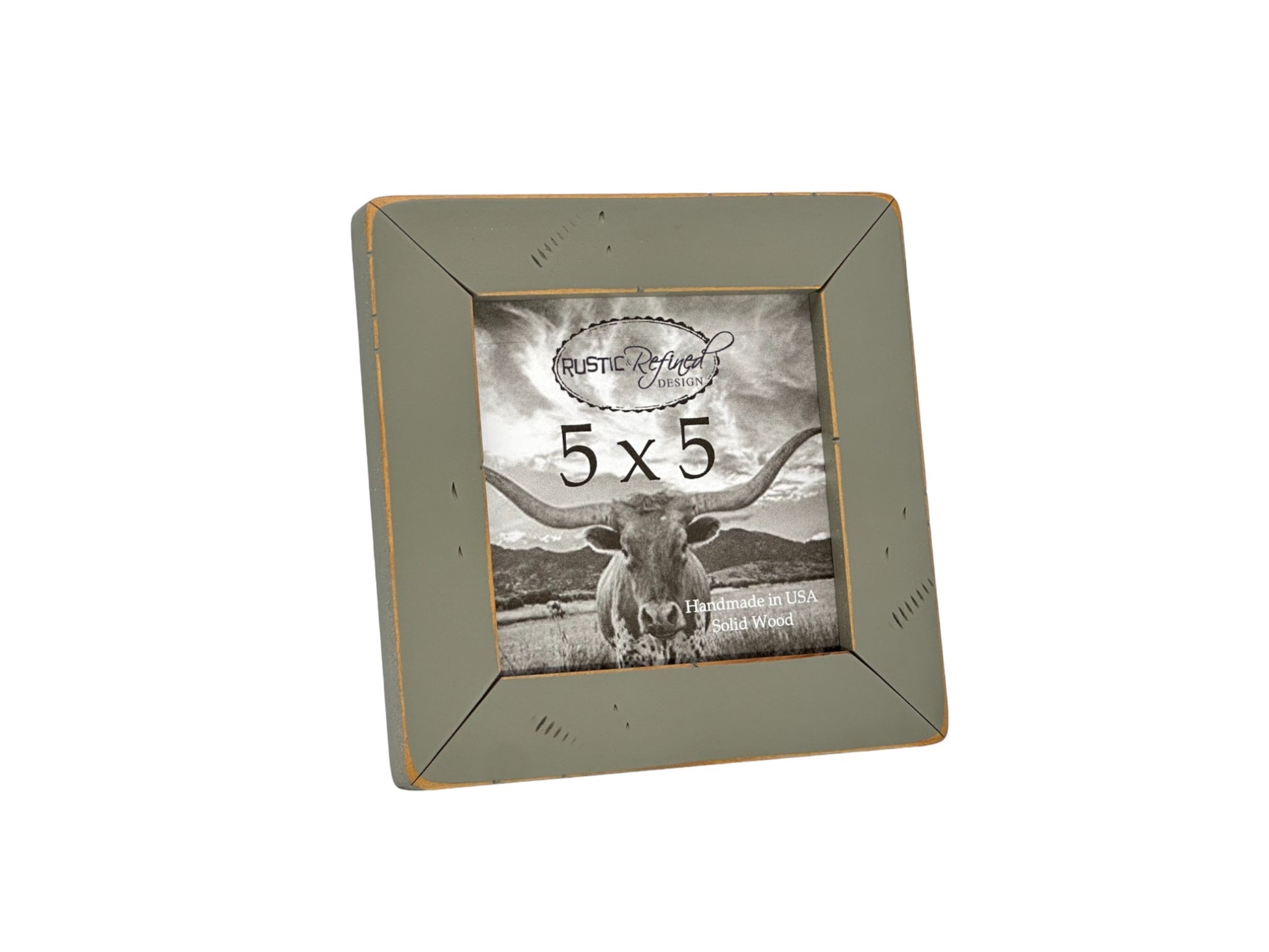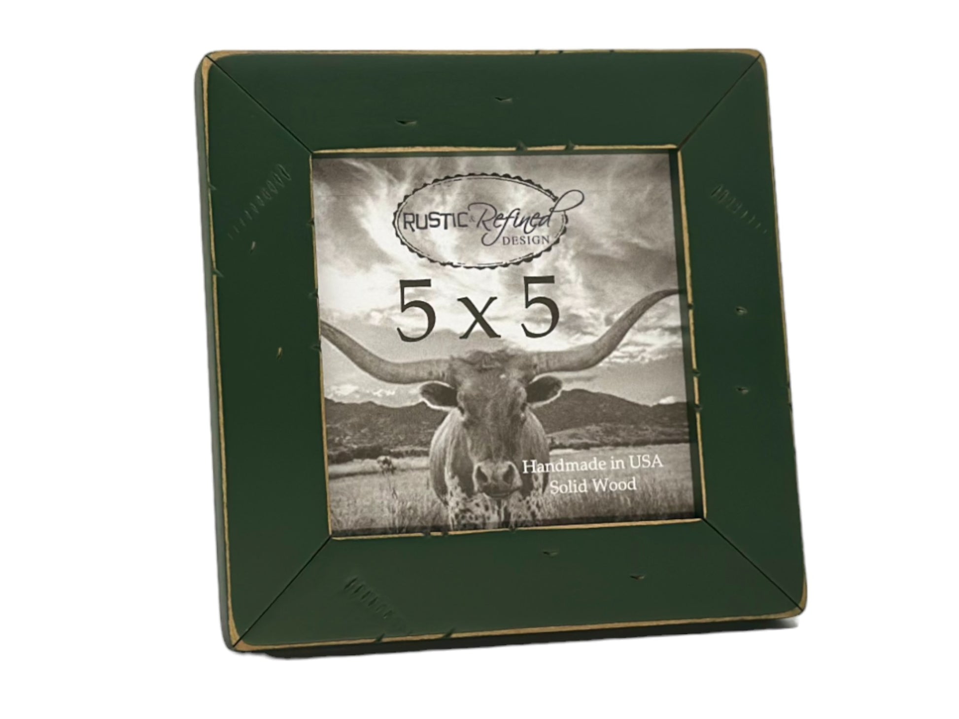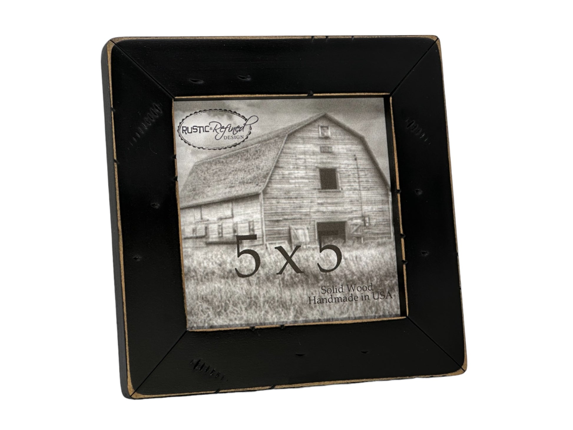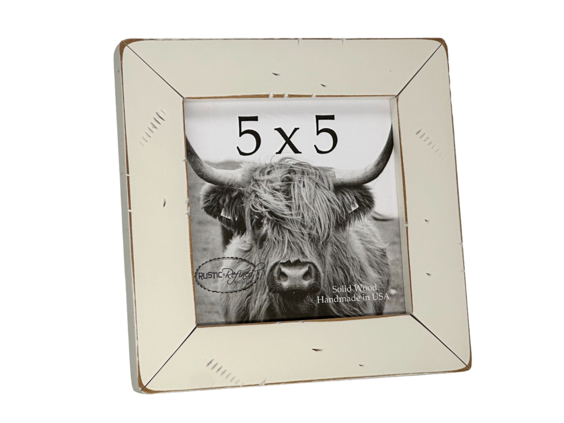 Our 5x5 cabin frame measures 5 1/8" x 5 1/8" where you insert your photo and the front viewable opening measures 4 1/2" x 4 1/2" to account for the 1/4" overlap around the frame