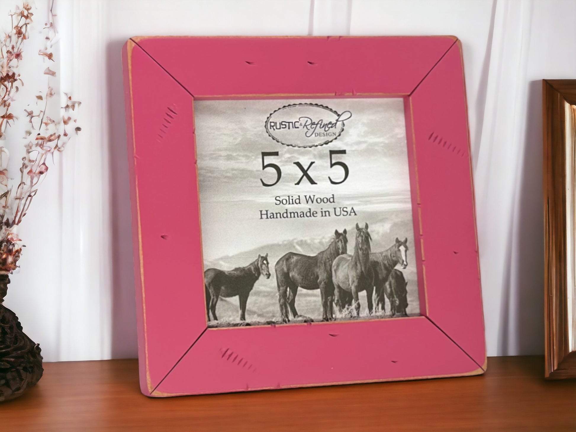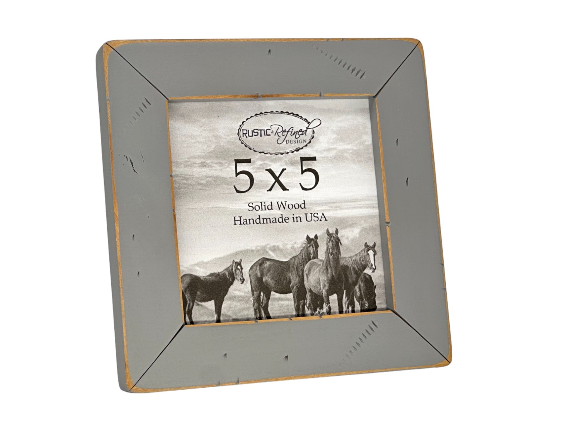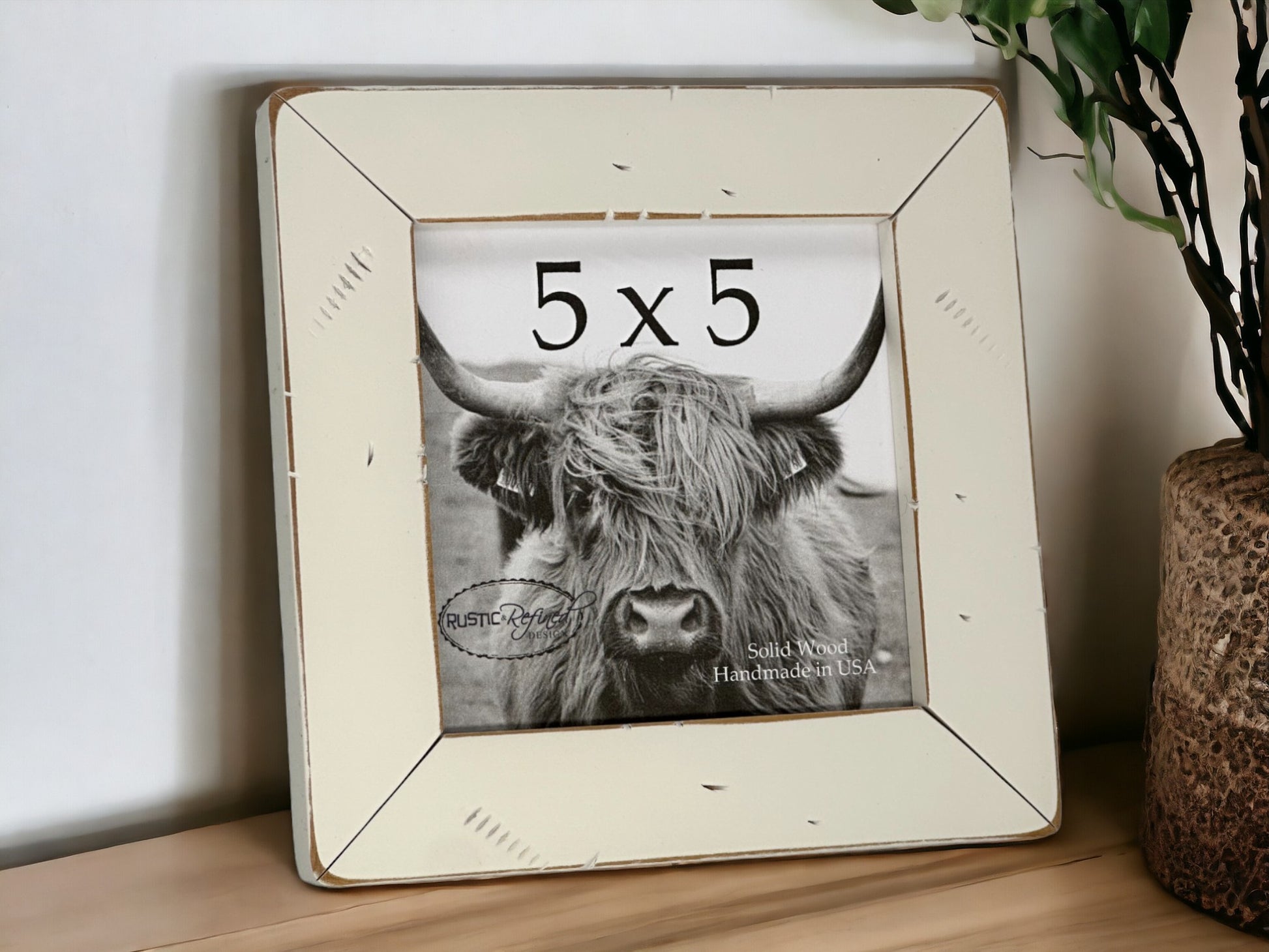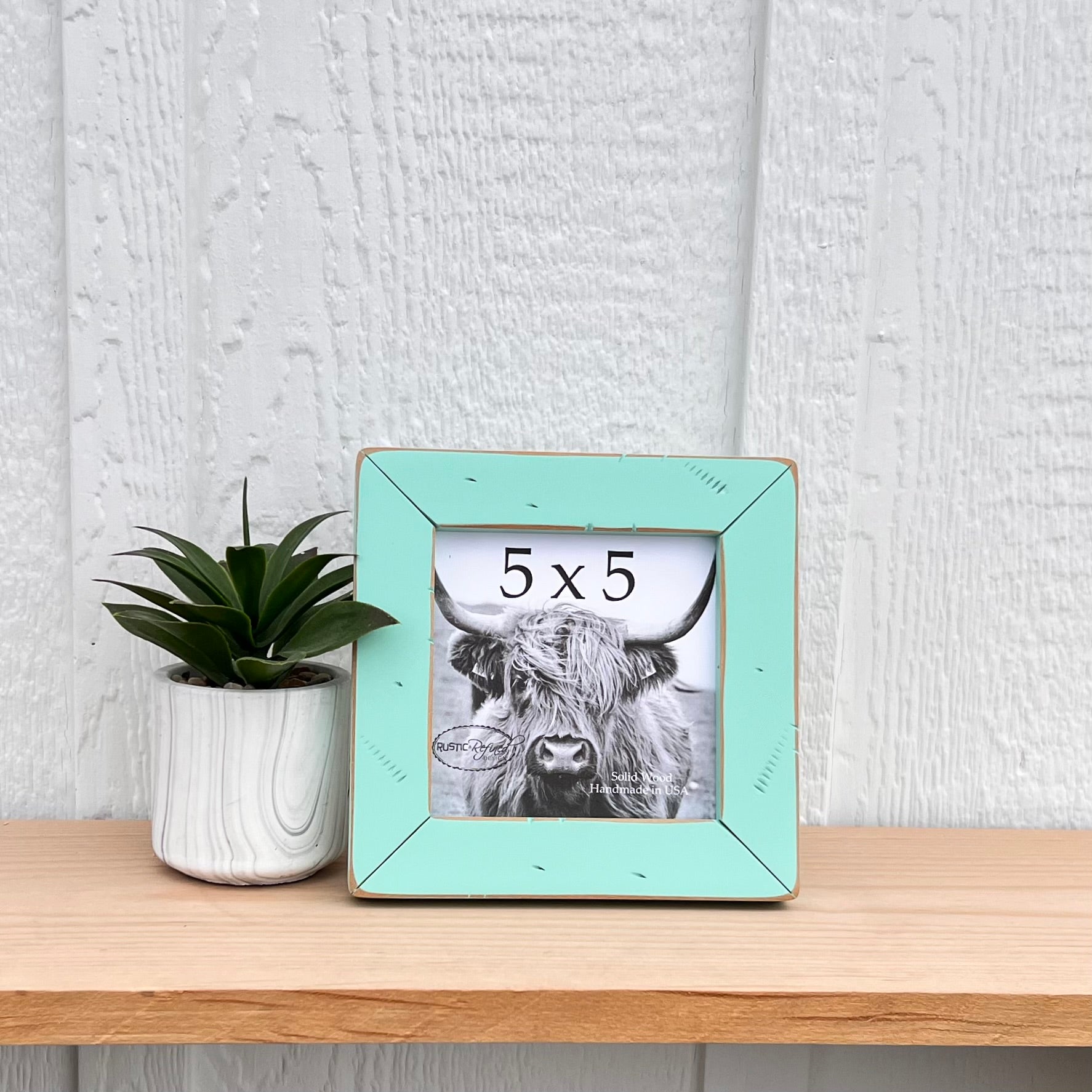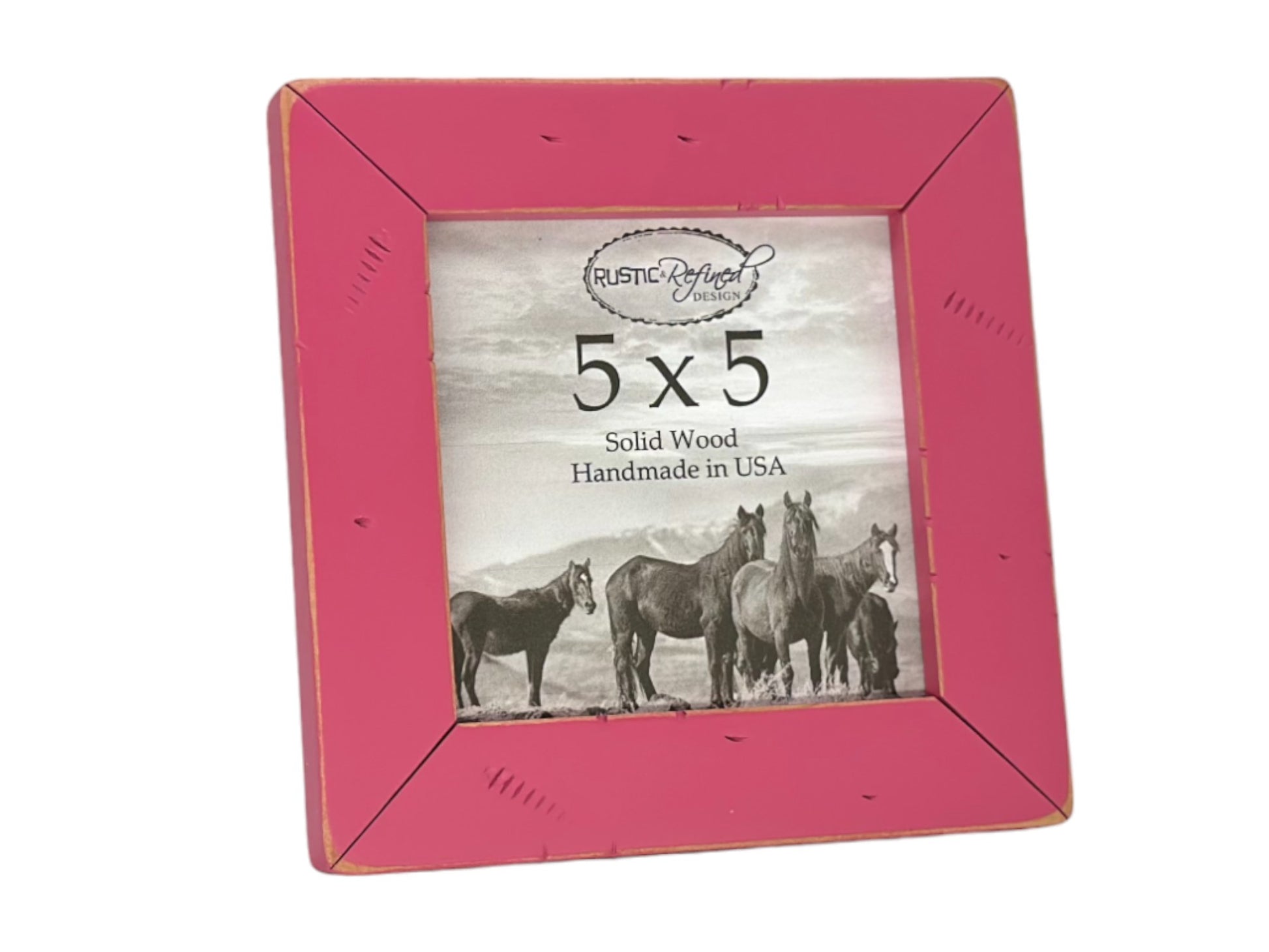 These adorable 5x5 frames are offered in 26 beautiful colors, with sanded edges, cracked corners and distressing this frame will add a uniquely rustic touch to any space.